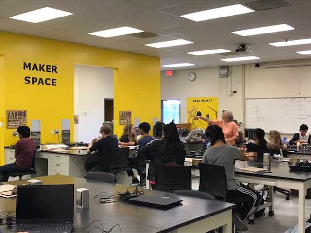 We had another group of students visit the Maker Space Lab on campus today. The students got to make a key chain, construct a box with their name on it, and laser print on a bag. There are multiple 1 unit classes that are available for students to take starting at 3:00. These classes are open to all students. Because they are only 1 unit mini courses, I will even approve 9th graders to take these course as a second college class this semester. We really appreciate Professor Karen Cook inviting our students in for two hour sessions to check out the lab.